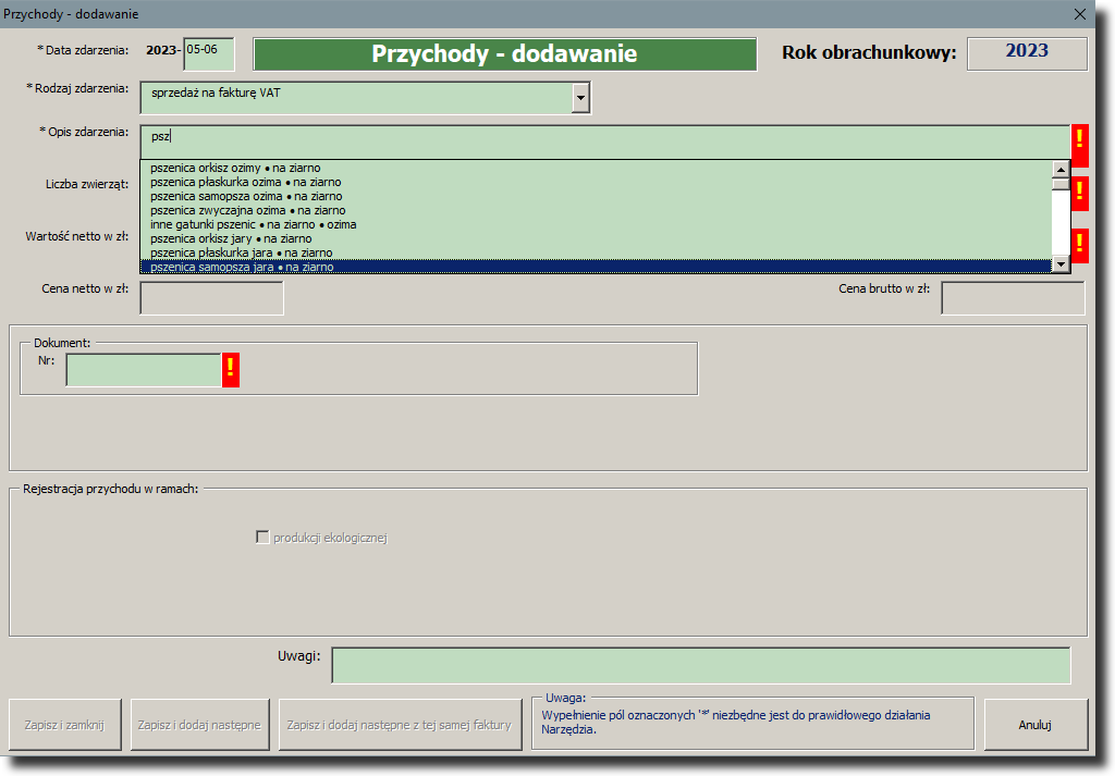 UWAGA dla użytkowników NOE do wersji '008' włącznie: Dla osób mających trudności z przesłaniem zestawień lub wykazu faktur do ARiMR przygotowaliśmy Konwerter, który automatycznie poprawi i dostosuje pliki xlsx do wymagań systemu informatycznego ARiMR! Użytkownicy NOE od wersji '009' NIE muszą używać Konwertera! Konieczne jest pobranie Konwertera, zapisanie go na dysku lokalnym komputera. Po otwarciu go należy wskazać pliki z zestawieniami i/lub z wykazem faktur (o rozszerzeniu xlsx). Konwerter automatycznie dokona wymaganych poprawek i dostosowań. Poprawione i dostosowane pliki zostaną zapisane na dysku lokalnym. Do ich nazw zostanie dodana końcówka '-K'. Pliki z '-K' na końcu należy przesłać do ARiMR. Uwaga, w zestawieniu sprzedaży konieczne jest ręczne poprawienie oznaczenia sprzedaży produktów w przypadku gospodarstw w okresie konwersji na rolnictwo ekologiczne oraz przypisanie umów do sprzedaży. Za niedogodności przepraszamy, Zespół NOE |