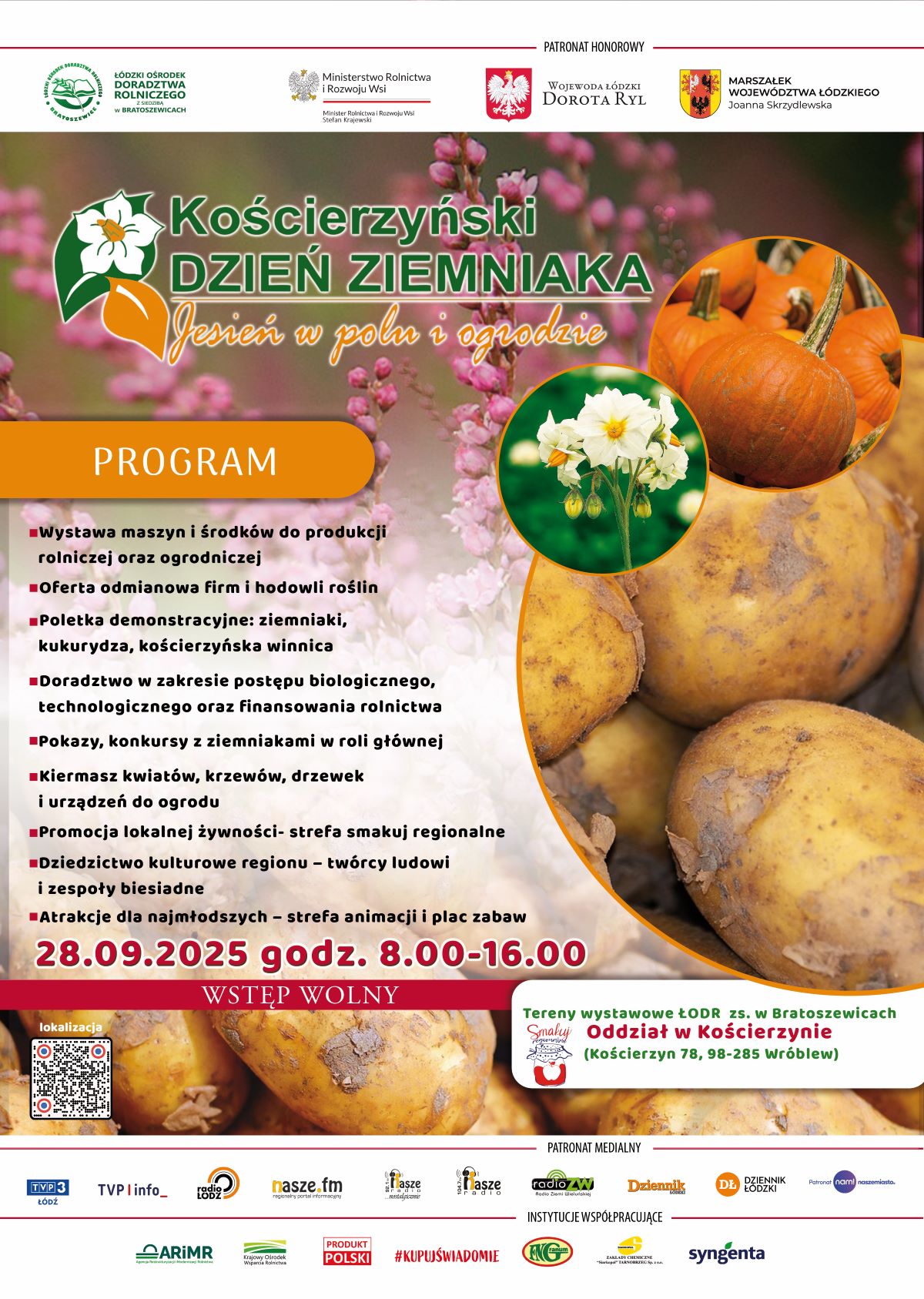 Już w niedzielę 28 września 2025 roku Kościerzyn w gminie Wróblew ponownie stanie się stolicą ziemniaka. Łódzki Ośrodek Doradztwa Rolniczego zs. w Bratoszewicach Oddział w Kościerzynie zaprasza na trzynastą edycję Kościerzyńskiego Dnia Ziemniaka organizowanego pod hasłem „Jesień w polu i ogrodzie”. To wyjątkowe wydarzenie łączy tradycję z nowoczesnością. Na poletkach doświadczalnych zaprezentowanych zostanie aż 50 odmian ziemniaka hodowli polskich i zagranicznych, 12 odmian kukurydzy oraz kolekcja winorośli, minikiwi i jagody kamczackiej. Rolnicy, ogrodnicy i wszyscy pasjonaci wiejskiego życia będą mogli zobaczyć pokazy polowe zbioru ziemniaków, skorzystać z doradztwa specjalistów i zapoznać się z bogatą ofertą wystawienniczą maszyn, środków do produkcji rolniczej oraz roślin sadowniczych i ozdobnych. Nie zabraknie także emocji i dobrej zabawy. Organizatorzy przygotowali konkursy z kościerzyńską pyrką w roli głównej, takie jak wybór najcięższej i najdziwniejszej bulwy, a także zabawy zręcznościowe dla dzieci i dorosłych. Smakosze będą mogli odwiedzić strefę „Smakuj regionalnie”, gdzie koła gospodyń wiejskich oraz rolnicy prowadzący rolniczy handel detaliczny zaprezentują najlepsze lokalne potrawy. Odbędzie się również konkurs „Ziemniaczane potyczki z KGW” promujący akcję #KupujŚwiadomie i produkt polski. Kościerzyński Dzień Ziemniaka to doskonała okazja, by poznać nowinki rolnicze, posmakować lokalnych specjałów i spędzić czas w atmosferze regionalnych tradycji.